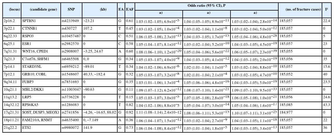 - 41. Trajanoska K, Morris JA, Oei L, Zheng HF, Evans DM, Kiel DP, Ohlsson C, Richards JB, Rivadeneira F. Assessment of the genetic and clinical determinants of fracture risk: genome wide association and mendelian randomisation study. BMJ 2018;362:k3225. https://doi.org/10.1136/bmj.k3225