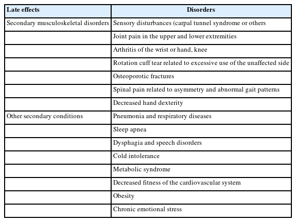 Table 1.Secondary musculoskeletal disorders and other secondary conditions as late effects