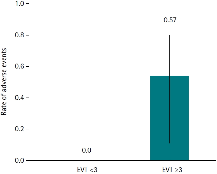 We retrospectively reviewed patients who underwent EVT for gastrointestinal transmural defects at Ewha Womans University Medical Center between February 2018 and September 2025 and analyzed clinical outcomes, adverse events, and risk factors associated with adverse events.