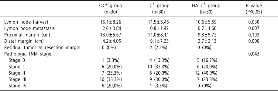 *OC, open colectomy; †LC, laparoscopic colectomy; ‡HALC, hand-assisted laparoscopic colectomy.