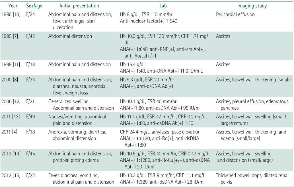 Cases of systemic lupus erythematosus patients who initially presented with gastrointestinal symptoms