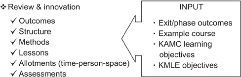 Fig. 4 Developing lesson outcomes from course review. KAMC, Korea Association of Medical Colleges; KMLE, Korean Medical Licensing Examination.