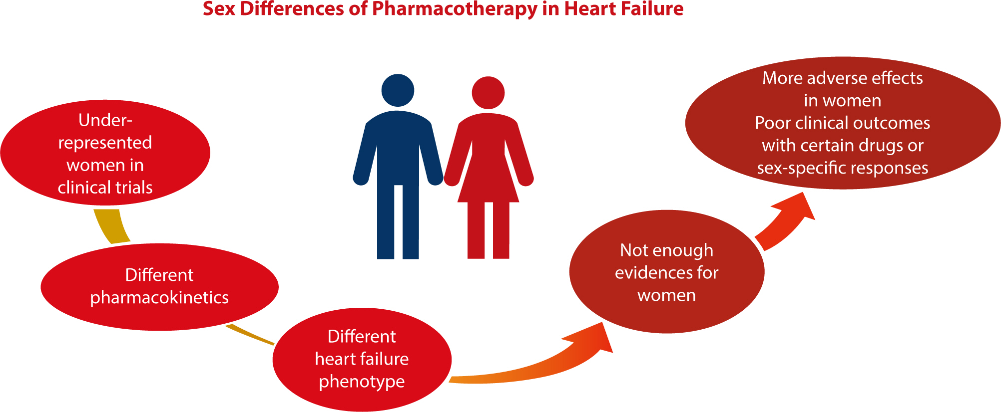 Overview of sex-based differences in pharmacotherapy for heart failure.