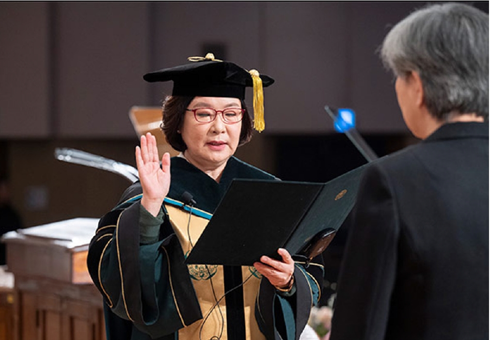 Dear distinguished guests and esteemed Ewha family members, I pray that the Lord’s endless grace and blessings be with you, and that His righteousness and love flow abundantly through Ewha.