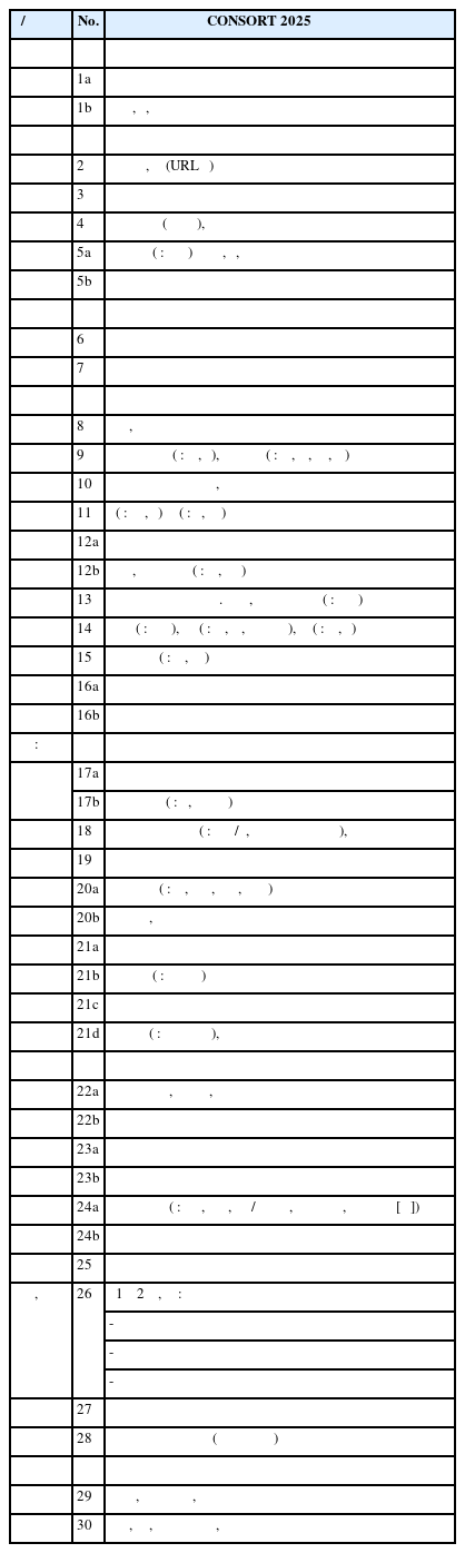 It is a Korean translation of the Hopewell S. et al. CONSORT 2025 statement: updated guideline for reporting randomized trials. Nat Med 2025 Jun;31(6):1776-1783.
